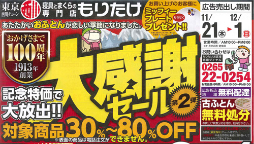 創業100周年記念「大感謝祭セール第2弾」11/21(木)~