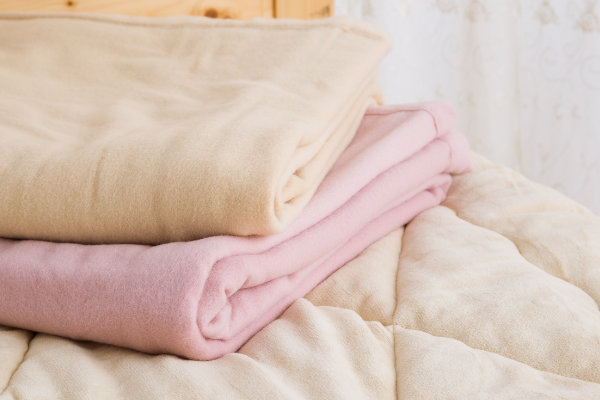 ウール、カシミヤ、アクリル、綿、麻など、毛布やケットは季節ごとの素材選びがとても大切です。冬場、羽毛布団をお使いなら、軽やかな「ウール」を内側(インナー)に。ウール特有の空気層が熱をたっぷりと抱え込み、湿気は逃がすため「蒸れずにポカポカ」が続きます。また、寝苦しい夏場には、汗をしっかり吸ってサラッと快適にお休みいただける「夏用ケット」もご用意しております。羽毛を潰さない軽さと、呼吸するような心地よさ。当店では、眠りのプロフェッショナルが、お客様の寝室環境や季節に合わせたベストな一枚をご提案します。どうぞお気軽にご相談ください。