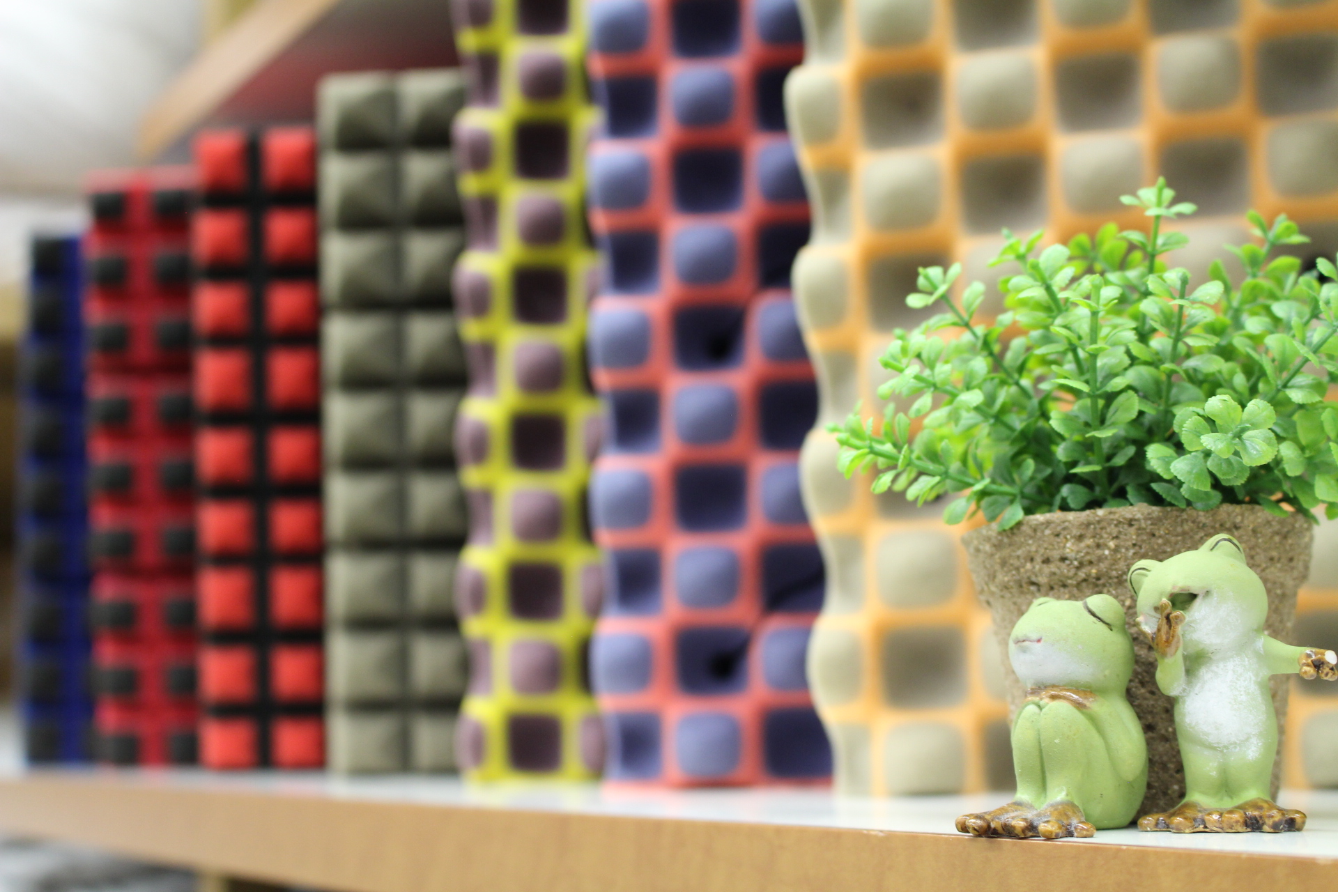 写真は店内のAiRブースに展示してあるAiRマットレスに使用されている特殊ウレタンのカットサンプルです。