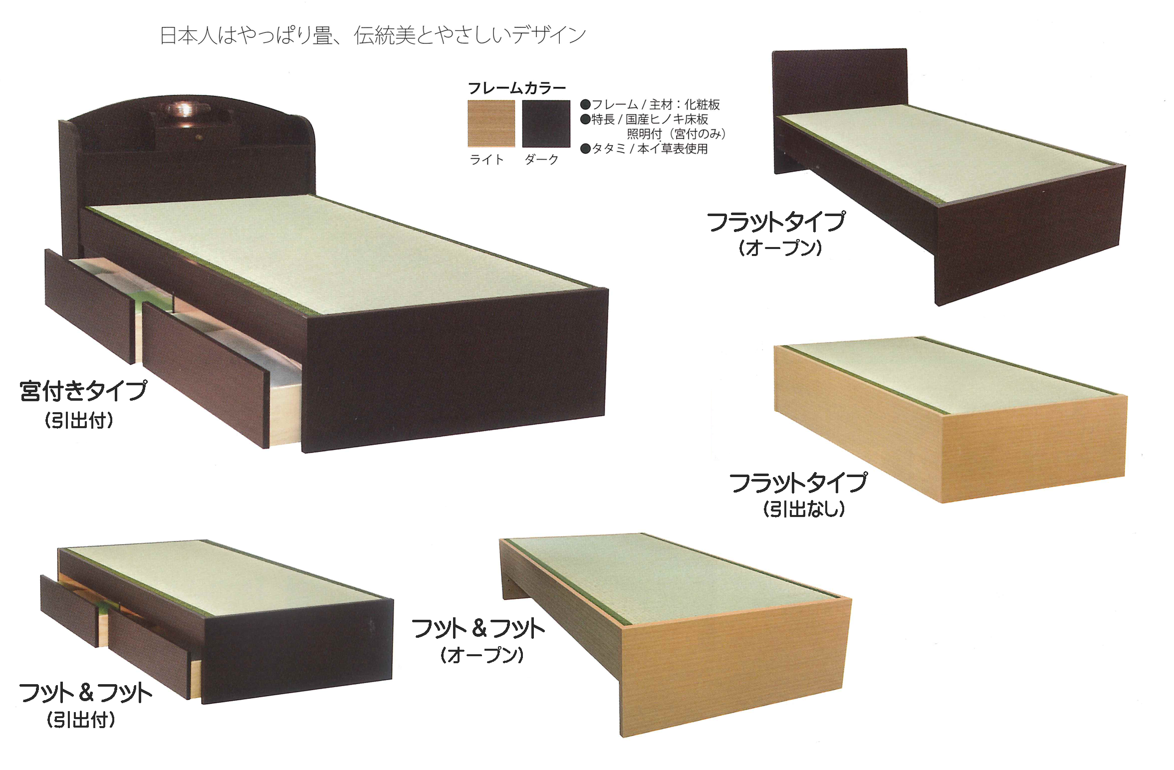 ベッド下は、引出付き/引出なし、フラットタイプ/オープンタイプ