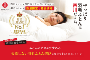 “西川の羽毛ふとん”がお客様満足度第1位に選ばれました!