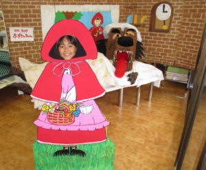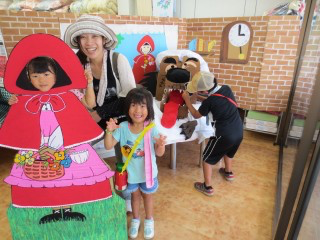 同時開催の「人形劇フェスタウインドウ人形展」では、当店の「赤ずきん」セットで皆さん写真に喜んで収まっていただきました。「お知らせ」欄にて写真を公開しておりますのでそちらもご覧くださいね。