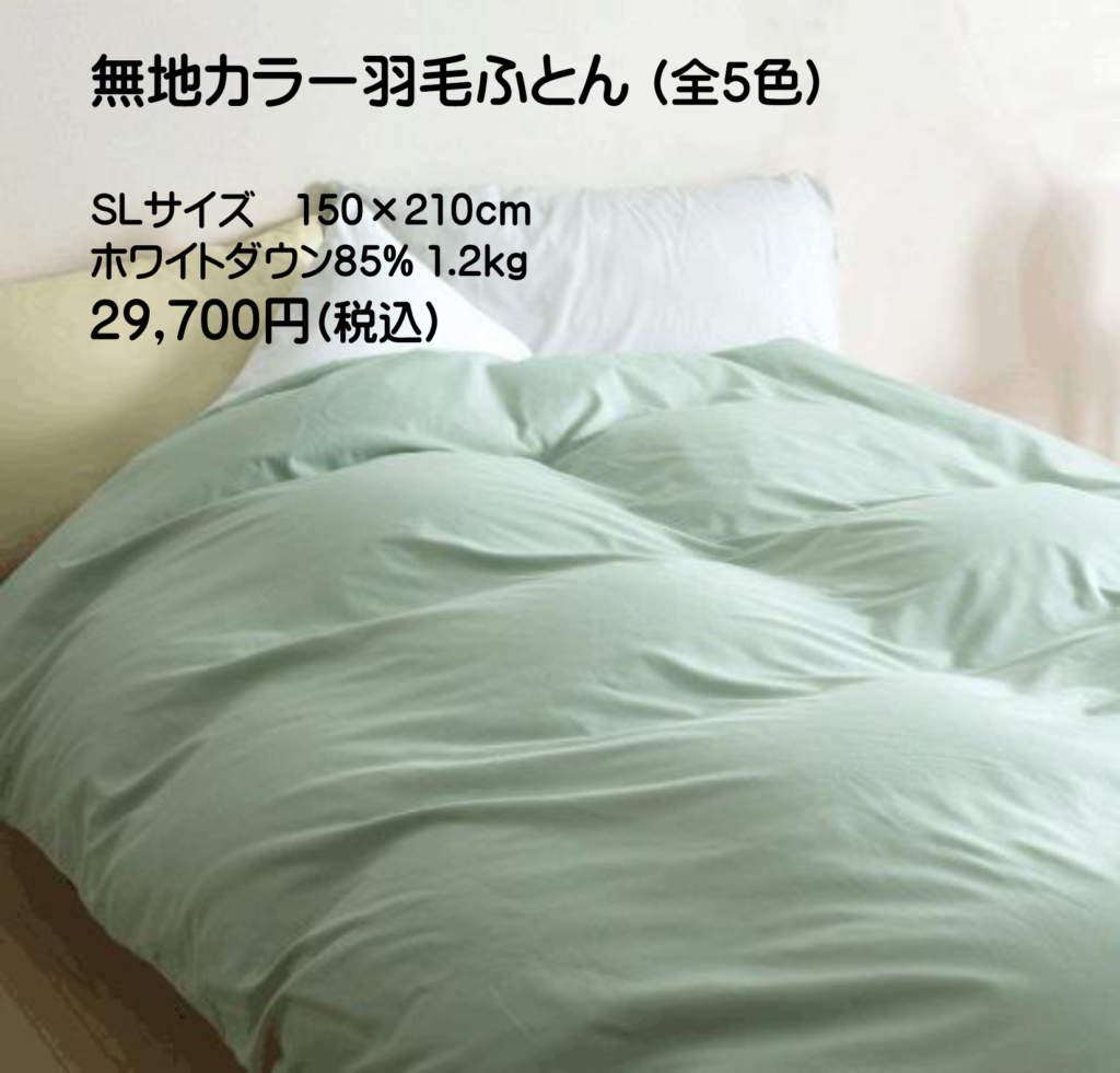 無地カラー羽毛ふとん/ 高品質なのに価格は抑えて5色から選べます。