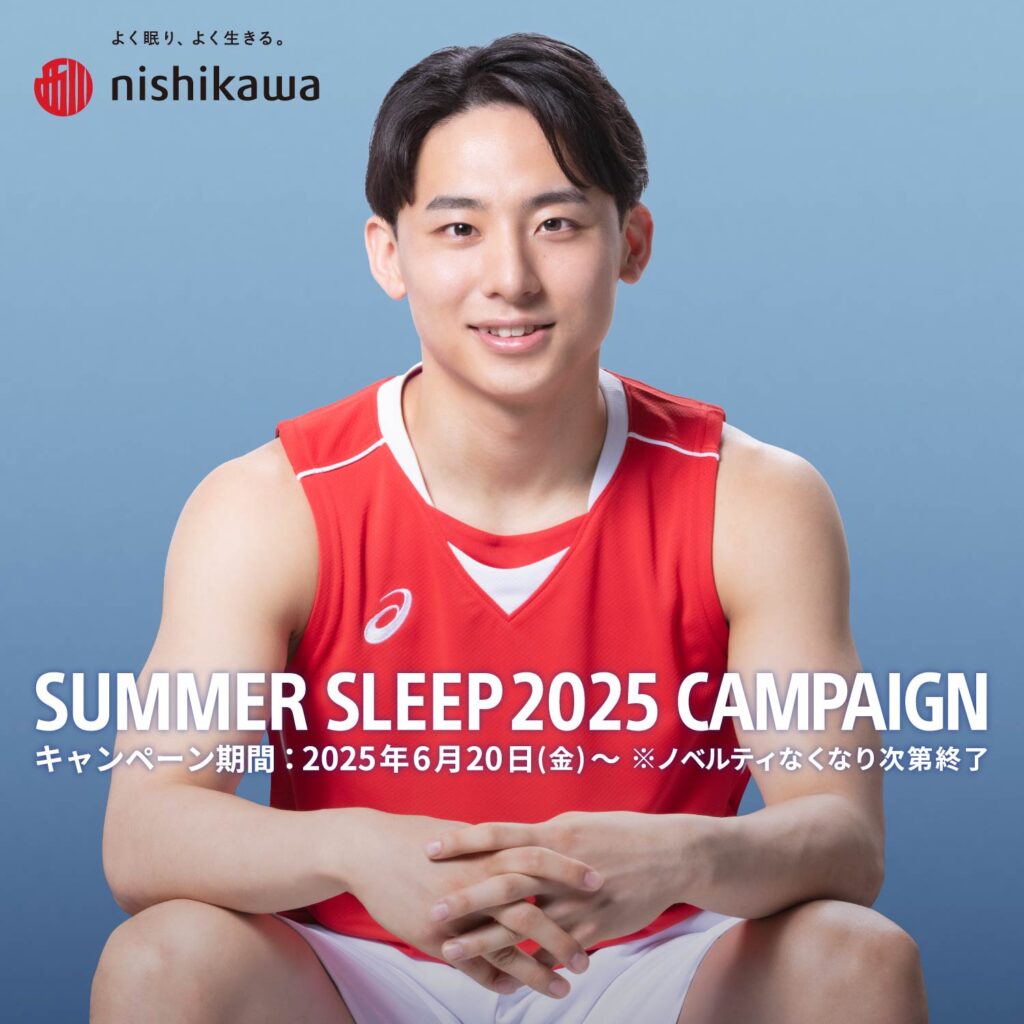 SUMMER SLEEP 2025 CAMPAIGN \nishikawa(@nishikawa_sleep)のキャンペーン開催/ #河村勇輝 SUMMER SLEEP 2025 CAMPAIGN 6月20日(金)~対象商品をお買い上げ頂いた方に... -