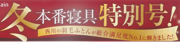 秋も深まり冬が目前に迫ってきましたね!お布団屋さんの季節になりました!(へへ)! 今回のセールは、西川の羽毛ふとんを値上がり前の価格でご提供できる最後の広告とな... -