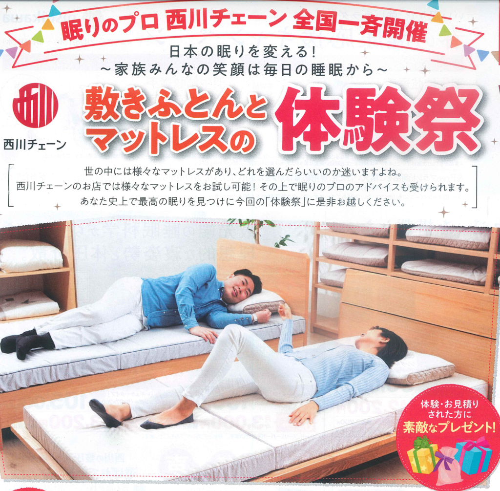 「西川の敷ふとん・マットレスの体験祭」開催中!! 3月28日(日)まで