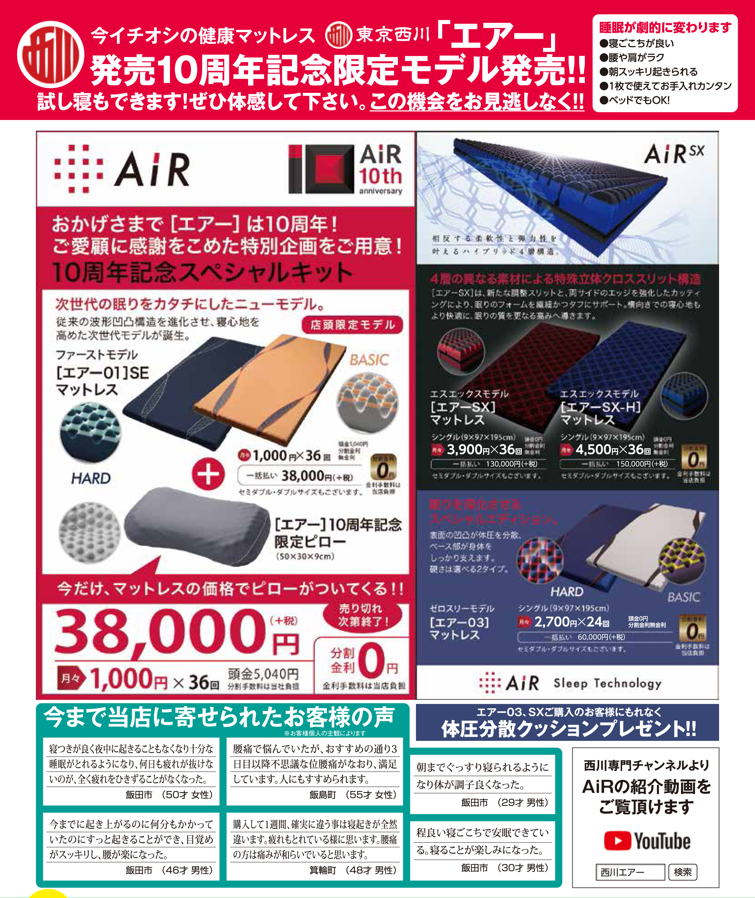 東京西川 “「エアー」10周年記念モデル企画”が11月末まで期間延長になりました!
