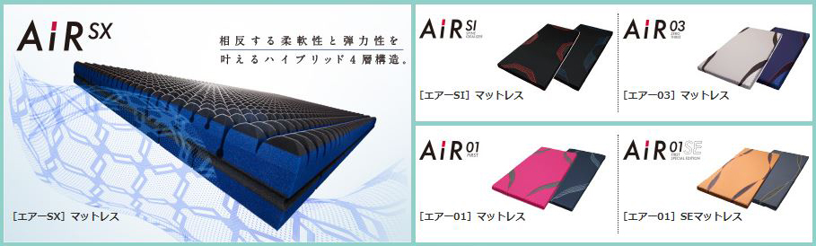AiRシリーズ健康マットレスは全5モデル。詳しくはお問合せください。