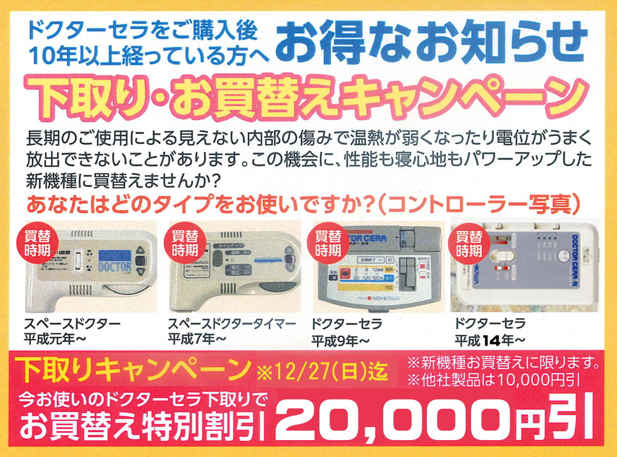 西川の健康敷ふとん”ドクターセラ”お買い替え下取りキャンペーン実施中です。