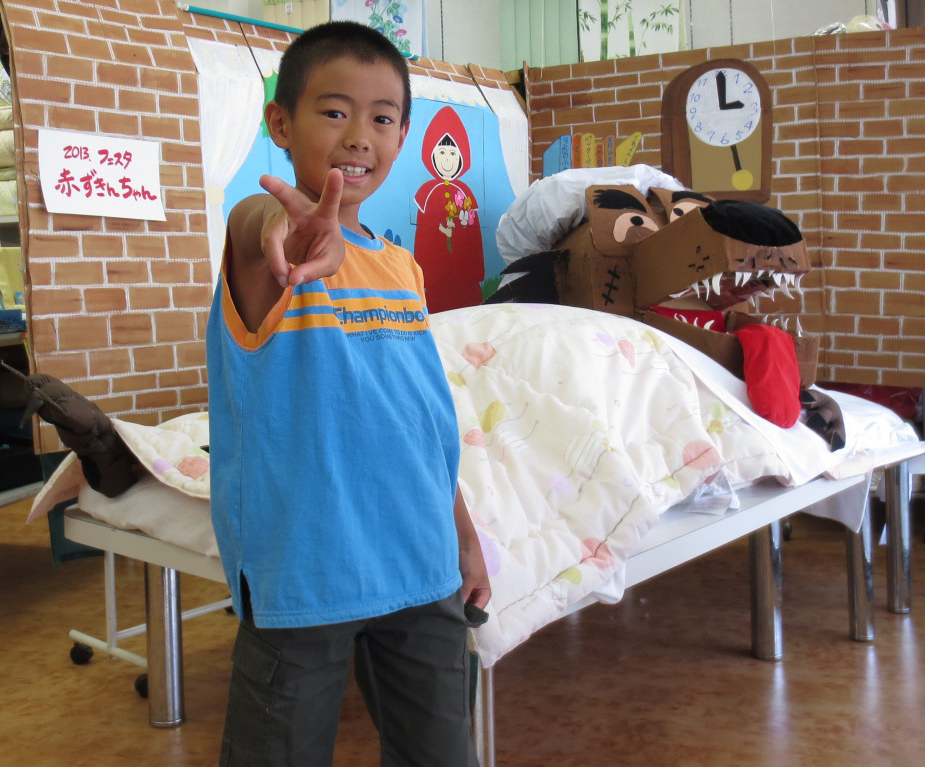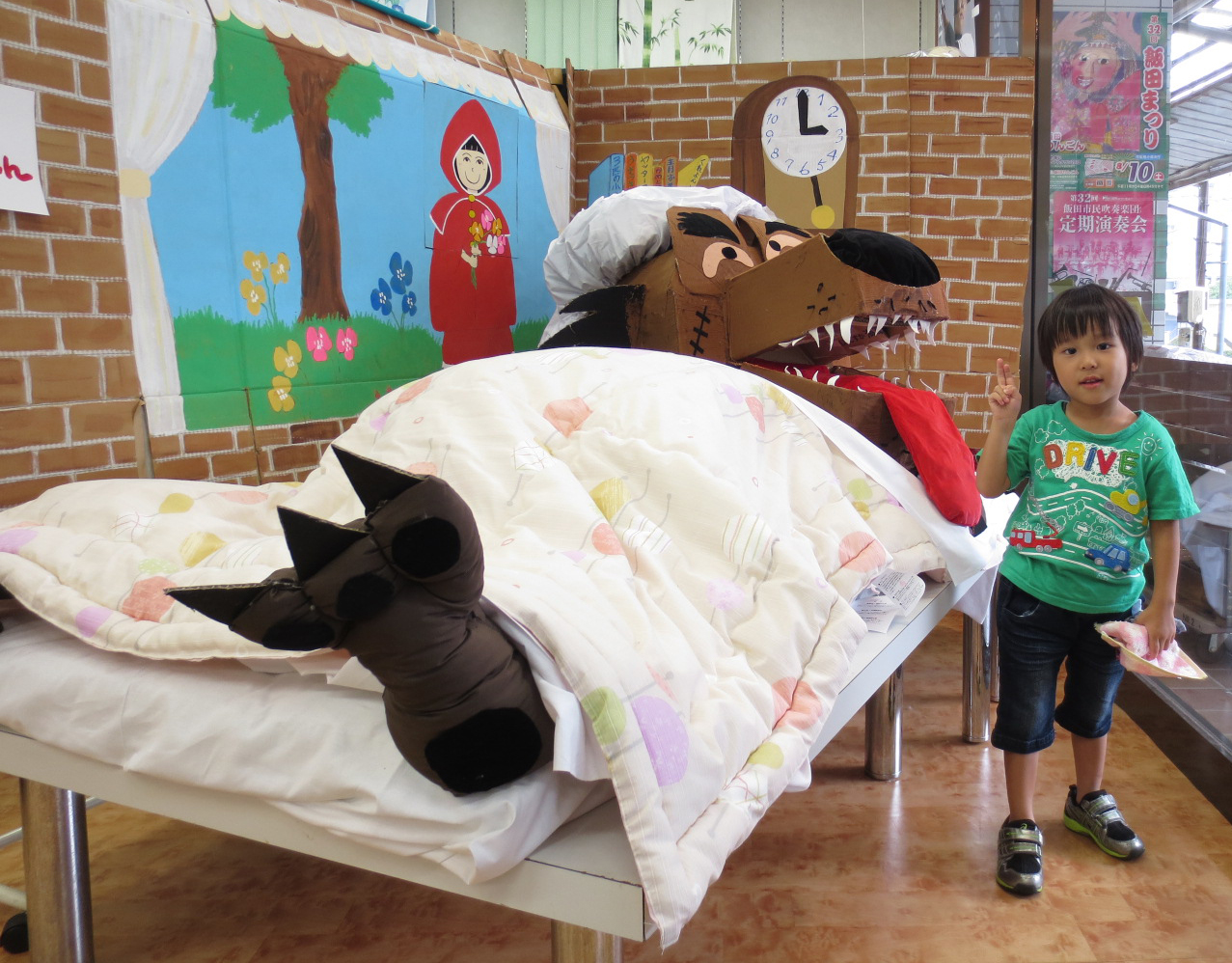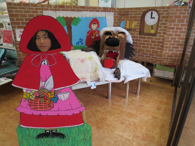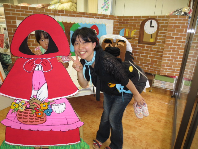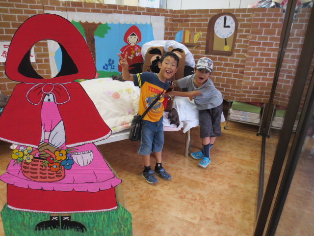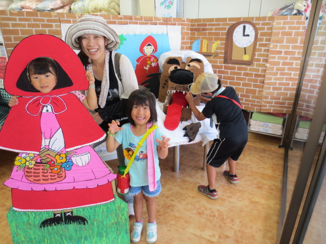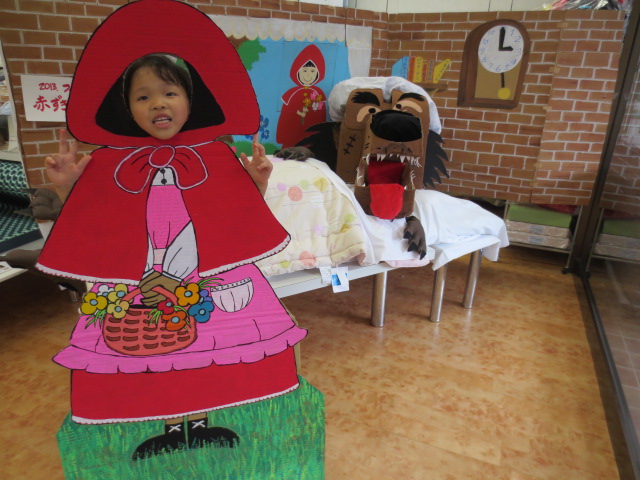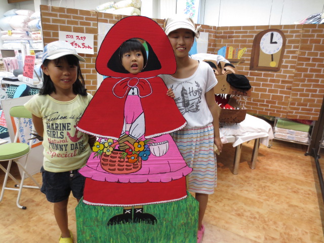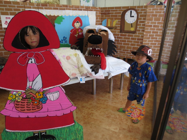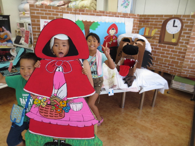 今年の当店のテーマは”赤ずきん” 大型のセットと顔出し赤ずきんでみんな笑顔で写真に収まっていただきました。