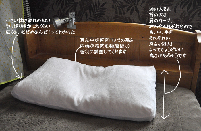 初めて、オーダー枕っていうのを作ってもらいました。 初めはちょっと柔らかすぎ?って思ったんだけど(いままで固いソバ枕が好みだったので) 高さが自分用にちょうど... -