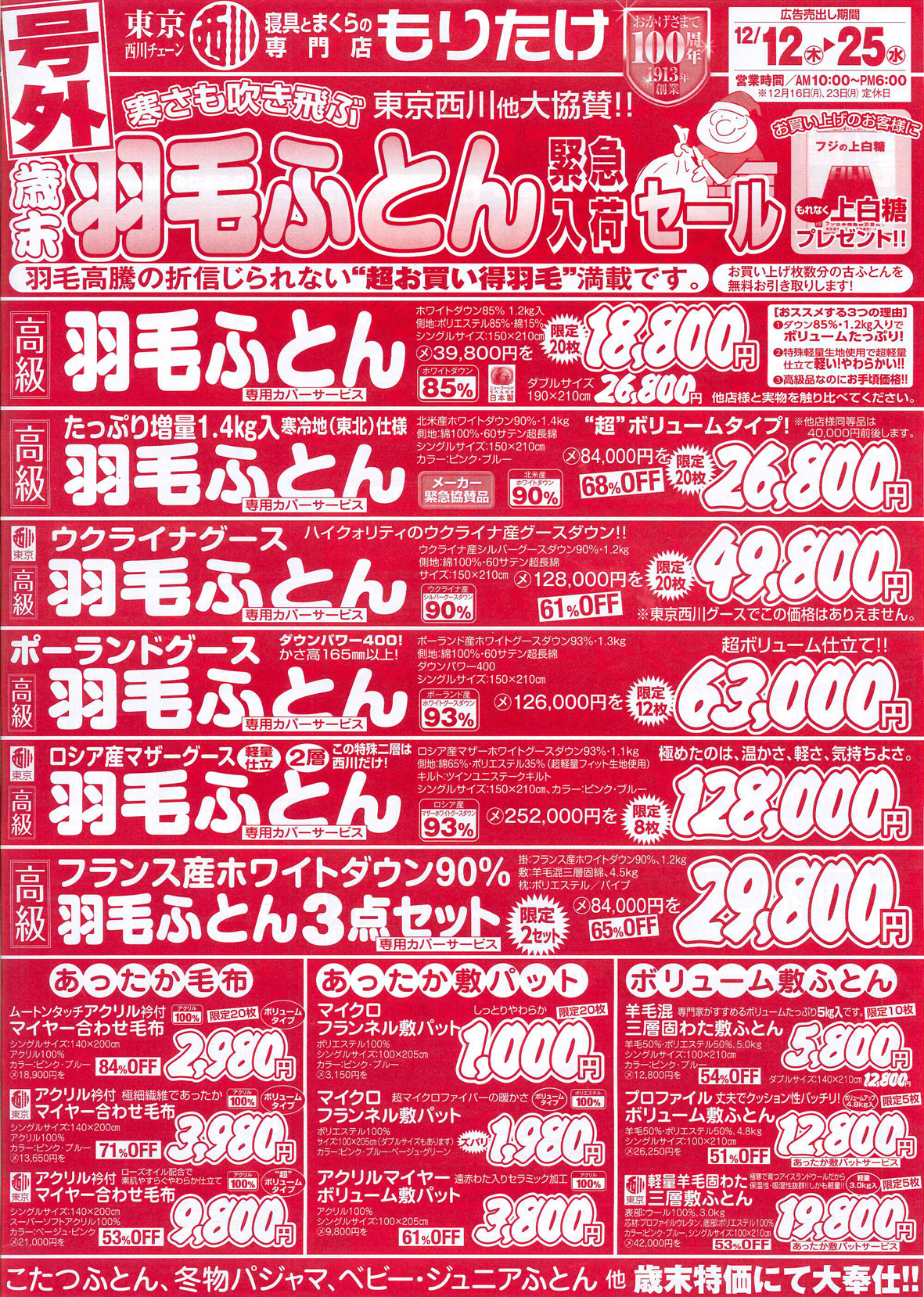 詳しくは12日朝刊折込広告をご覧下さい!