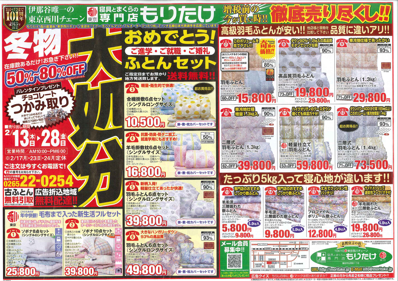 おふとんお買上げ枚数分古ふとん無料お引き取りします