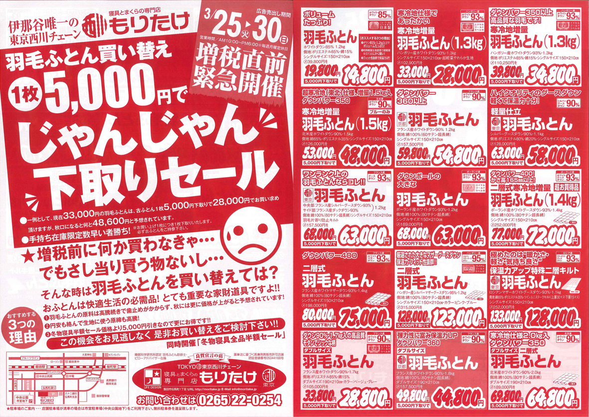 「古ふとん1枚5,000円でじゃんじゃん下取り」セールを緊急開催します!