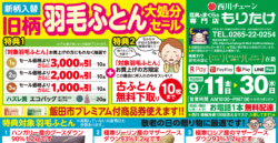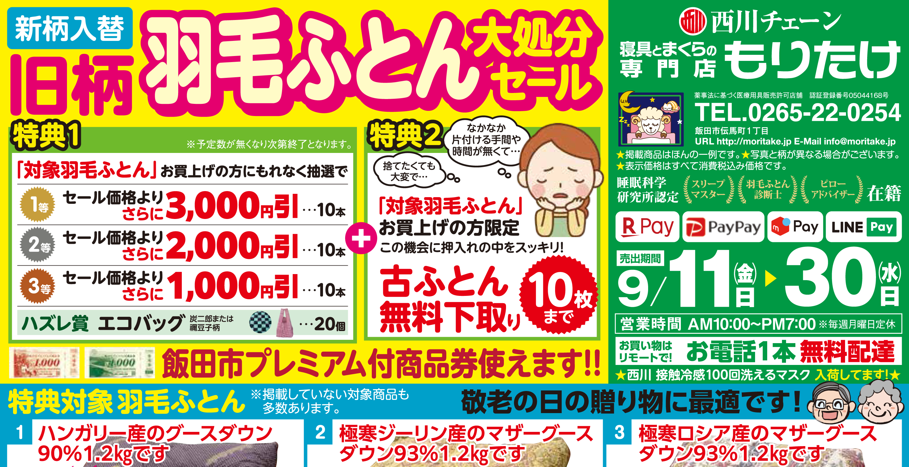 旧柄羽毛ふとん大処分セール! 本日~9/30(水)迄 お得な特典付きです!!