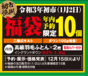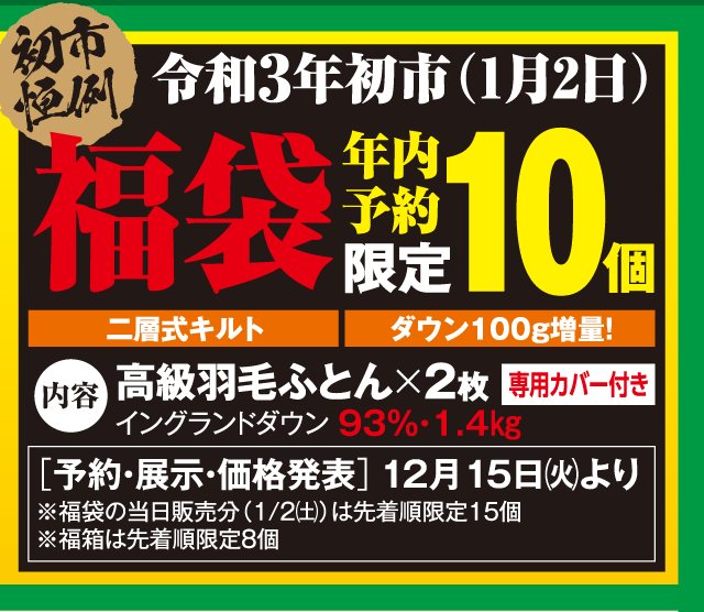 [ 令和3年新春初売り] 恒例の福袋を12月15日(火)より事前予約を受け付けします(価格発表・展示も同日より)。ご期待ください!