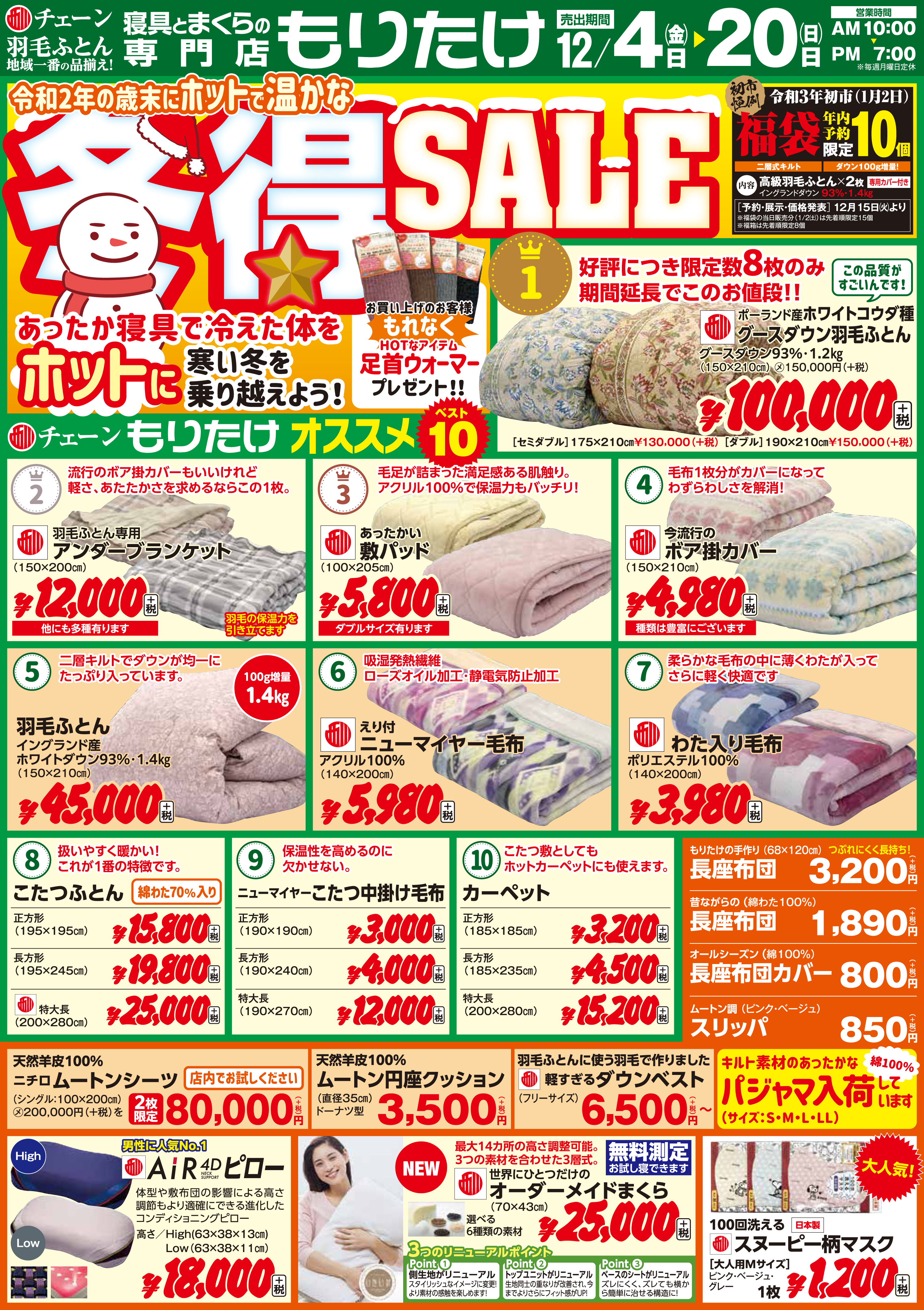 そこで「令和2年の歳末にホットで温かな冬得SALLを開催します。
