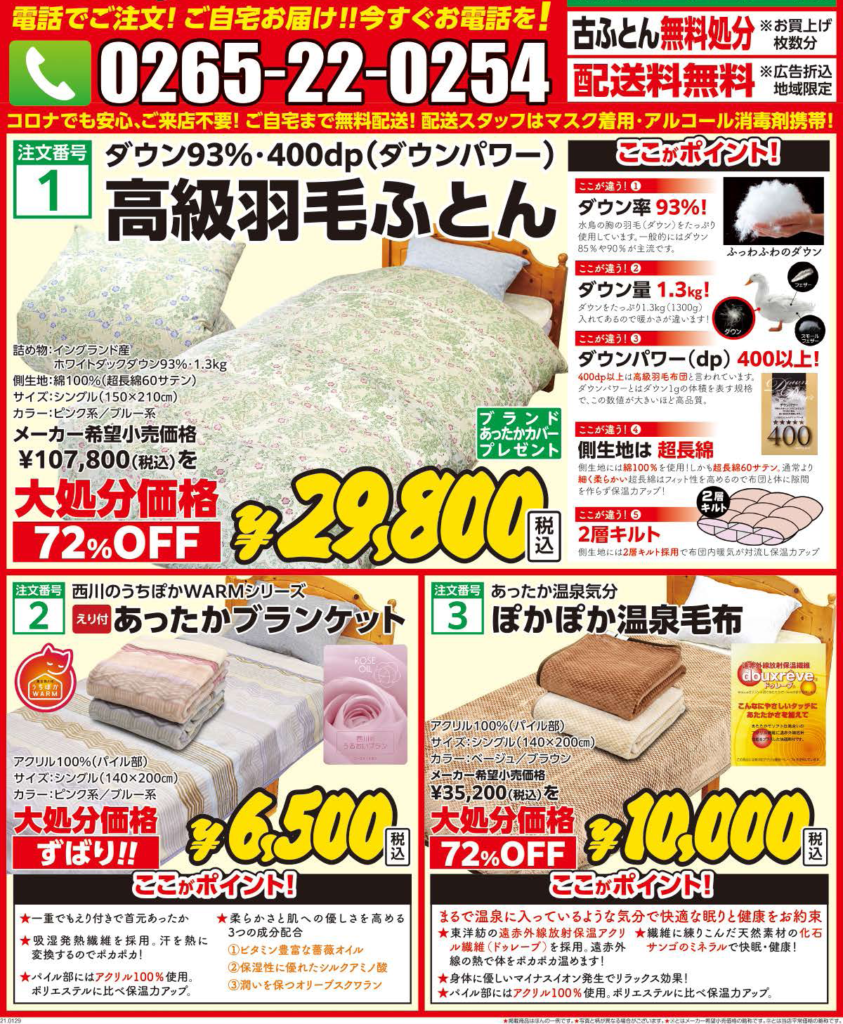 特に1⃣のオススメ羽毛ふとんは、朝から電話注文で大勢のお客様からご注文をいただいております。まだまだ間に合いますのでぜひお早めにお電話ください(へへ)!
