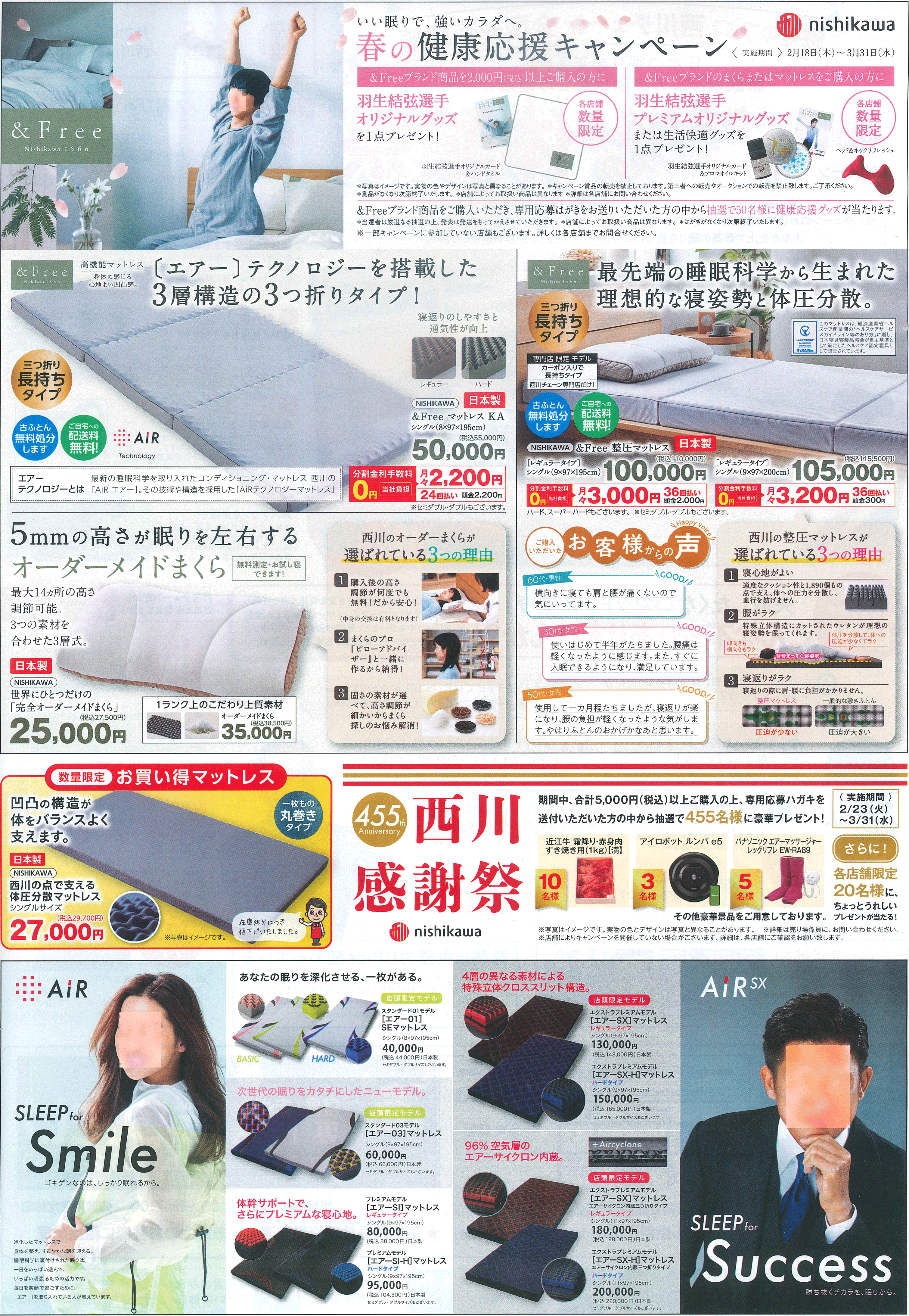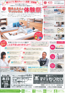 「西川の敷ふとん・マットレスの体験祭」開催中!! 3月28日(日)まで