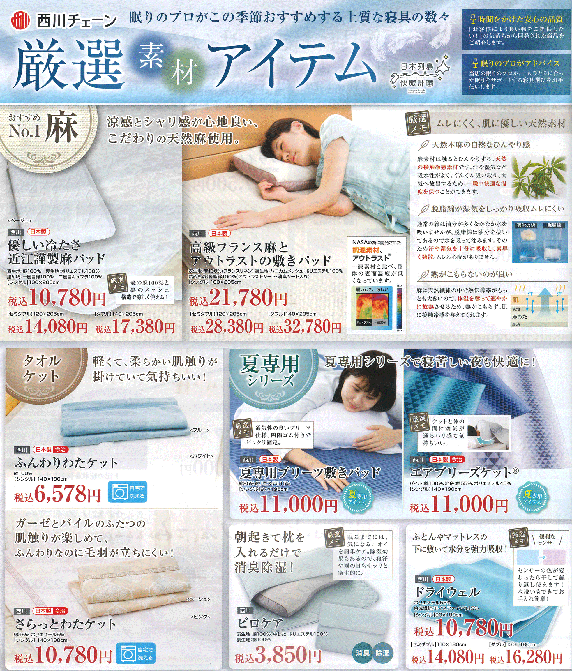 夏の厳選快適寝具は人気商品は毎年6月には品切れしてしまうのでお早目のご用意を!!
