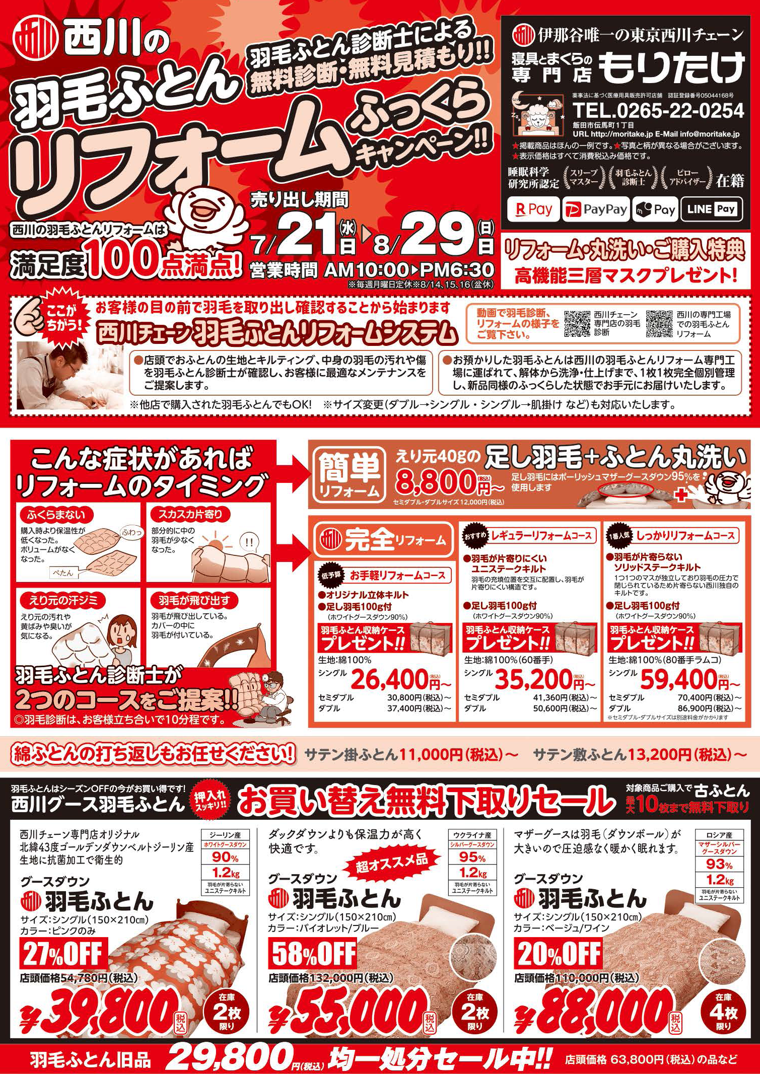 綿ふとん・羽毛ふとんのリフォームは「もりたけ」にお任せくたせさい(へへ)!