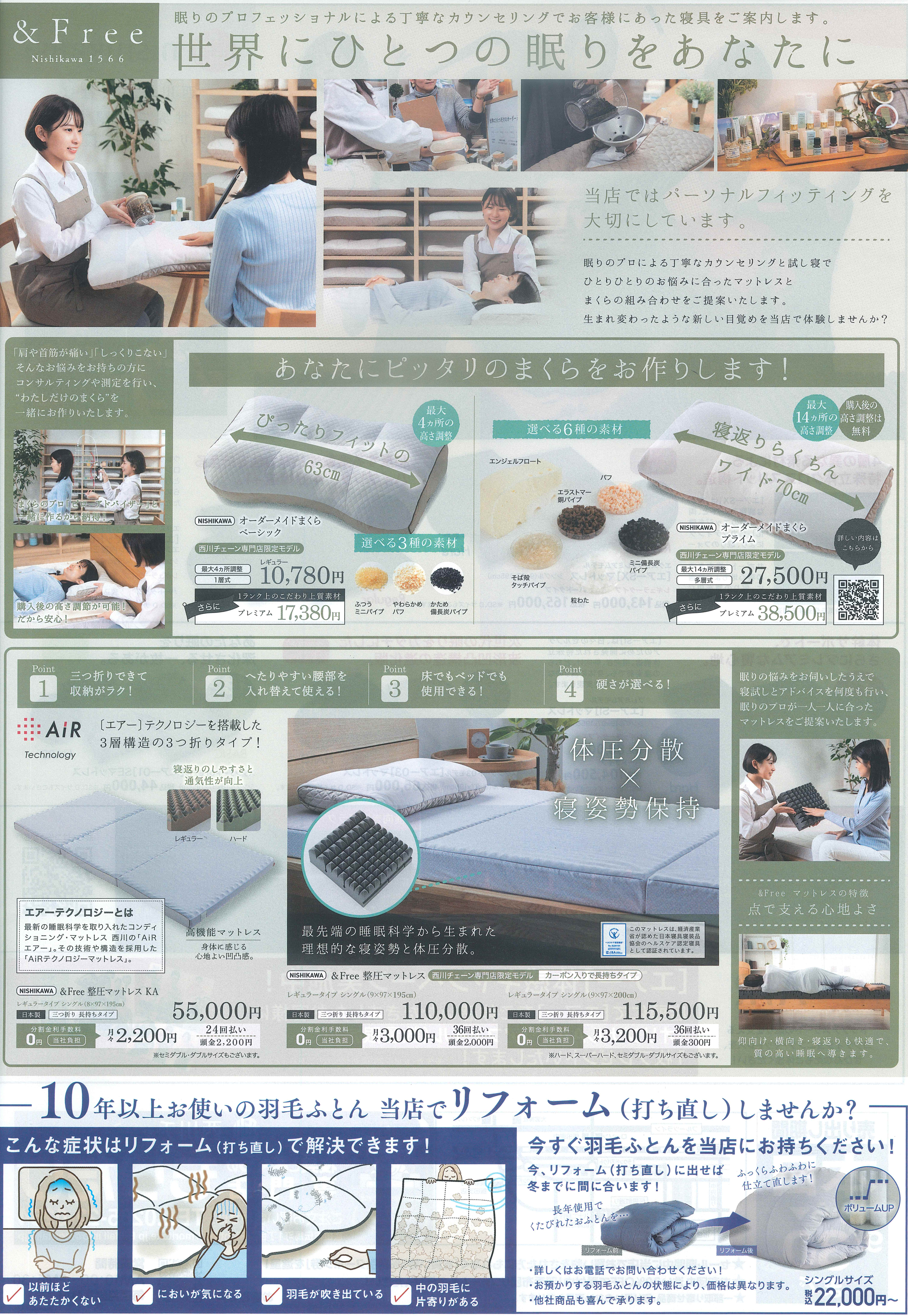 店頭で寝試し、2日間の無料貸し出しお家で体験サービスもできますのでぜひ一度店頭でご覧ください(へへ)!