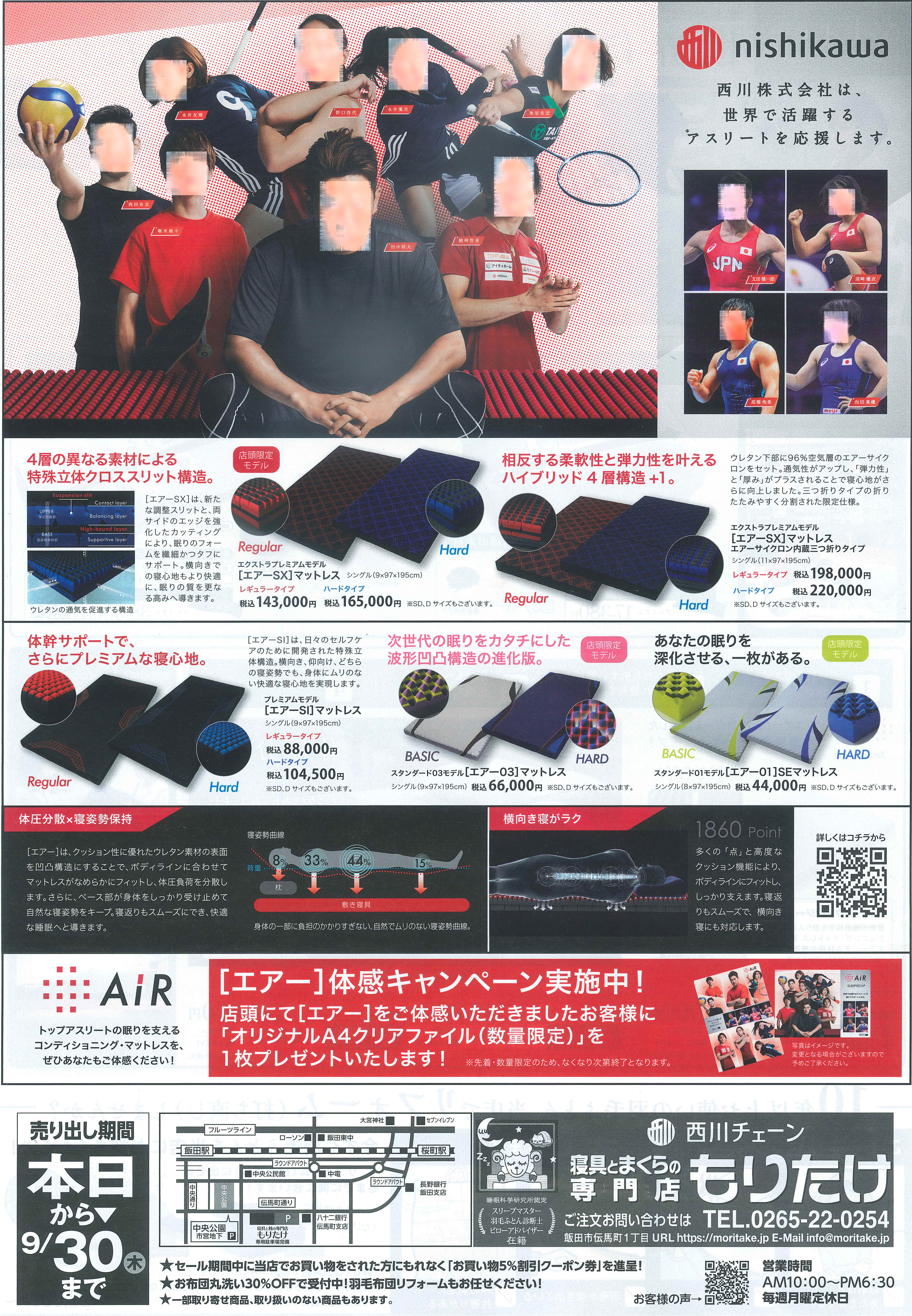 今回の広告では西川お健康マットを多数掲載しています。スポーツ選手に限らず毎日のお仕事で疲れたカラダを癒し十分な睡眠をとるためには敷寝具がとても重要です。
