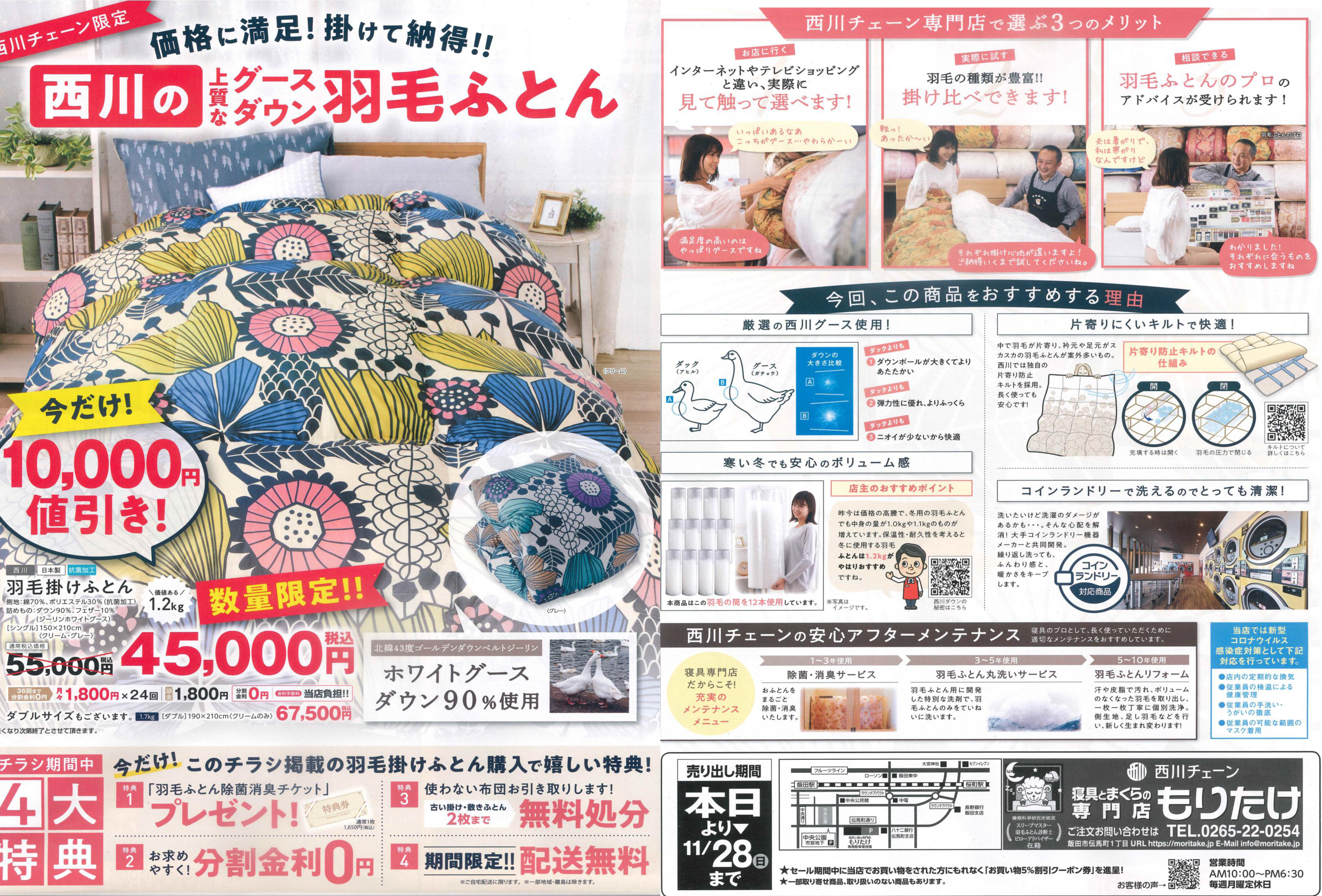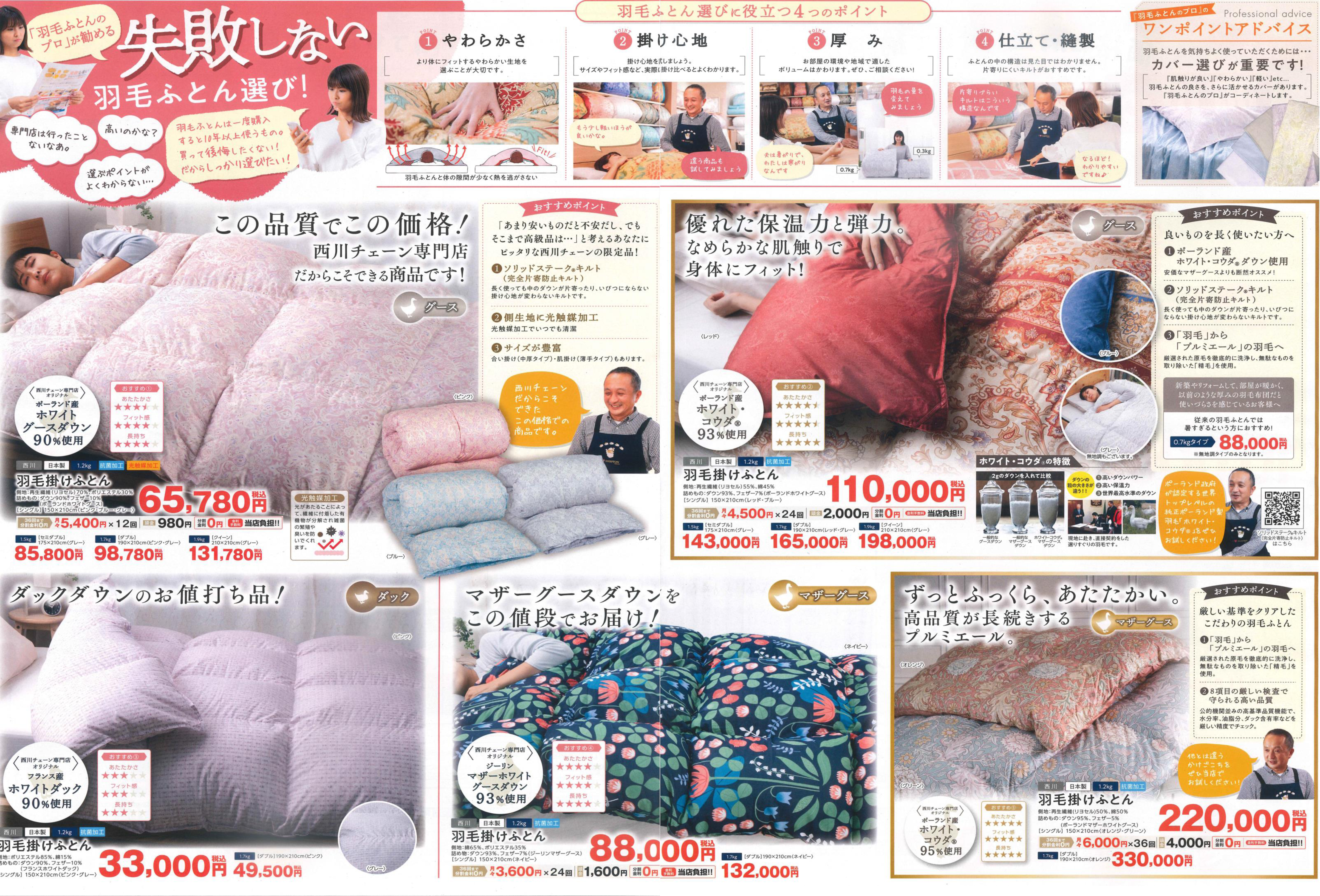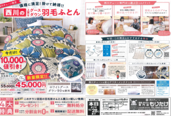 そこで明日より「西川の上質なグースダウン羽毛ふとんセール」を開催です