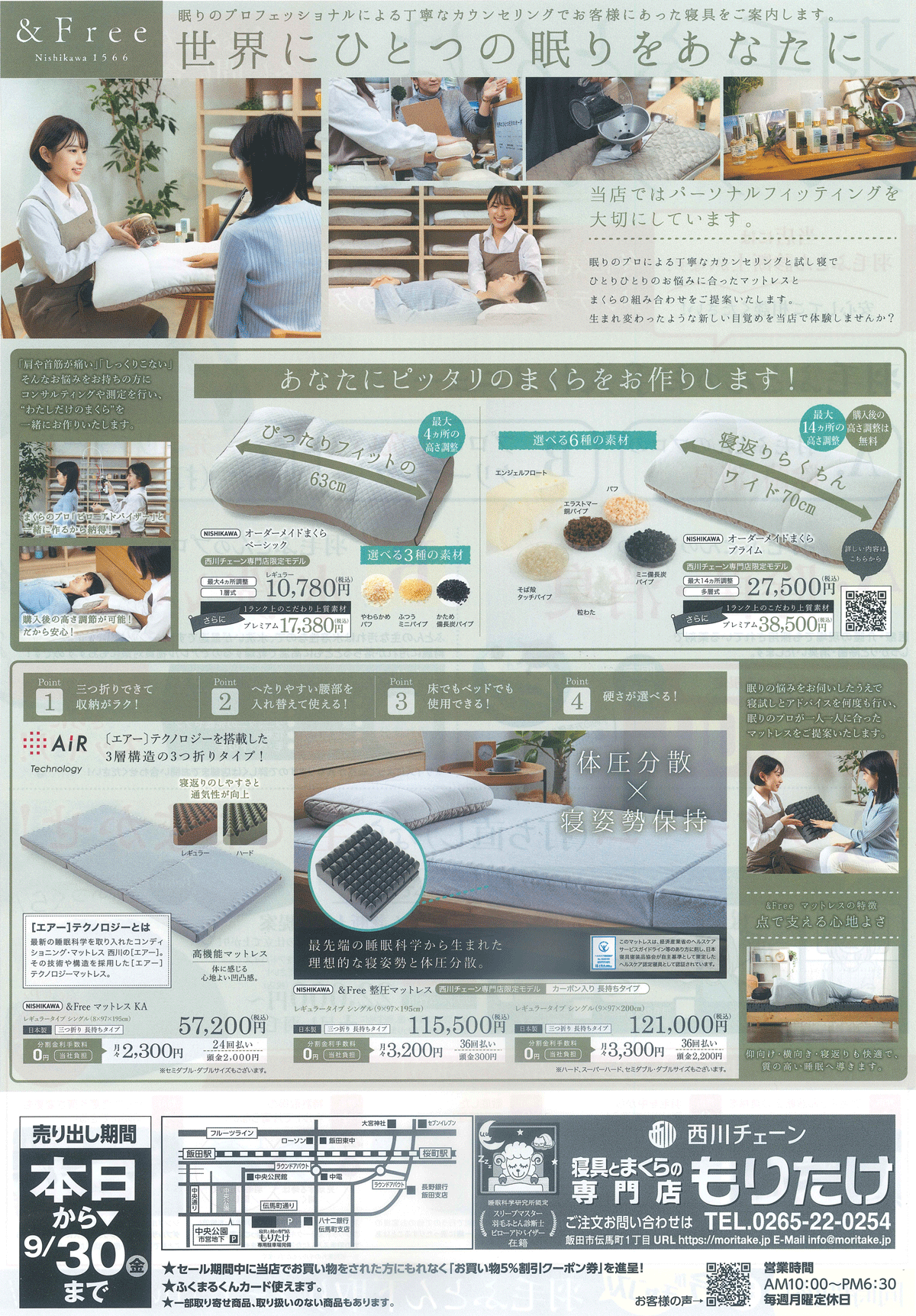 ◆世界にひとつだけのぴったり枕キャンペーン、体圧分散で寝姿勢を保持し快適に眠れる西川の健康マットレス「AiRシリーズ」キャンペーンを同時開催。