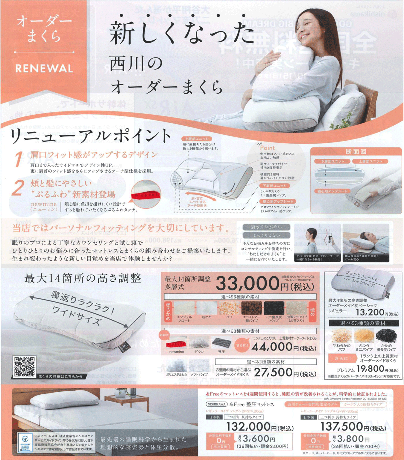 同時開催で「新しくなった西川のオーダーまくら」キャンペーンも実施中!