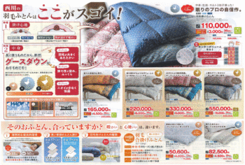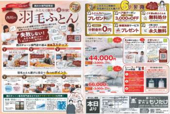 今回の広告には羽毛ふとん選びのポイントやミニ情報も掲載してますから本日折込の広告をぜひご覧ください!