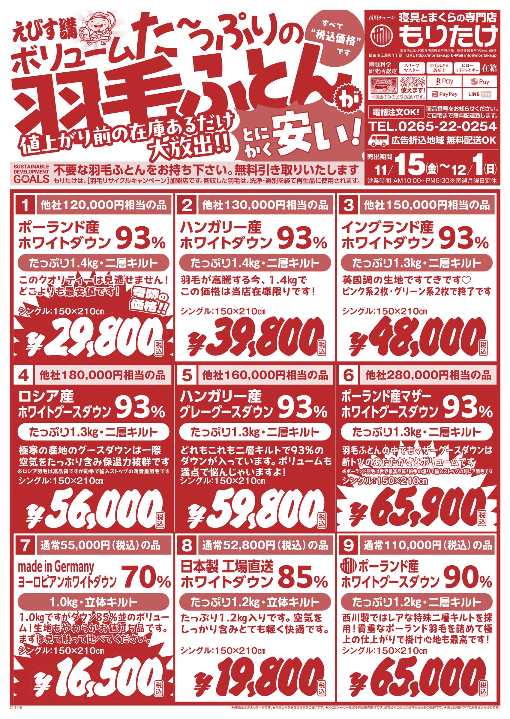 えびす講“羽毛ふとん値上がり前の在庫あるだけ大放出セール”開催中!