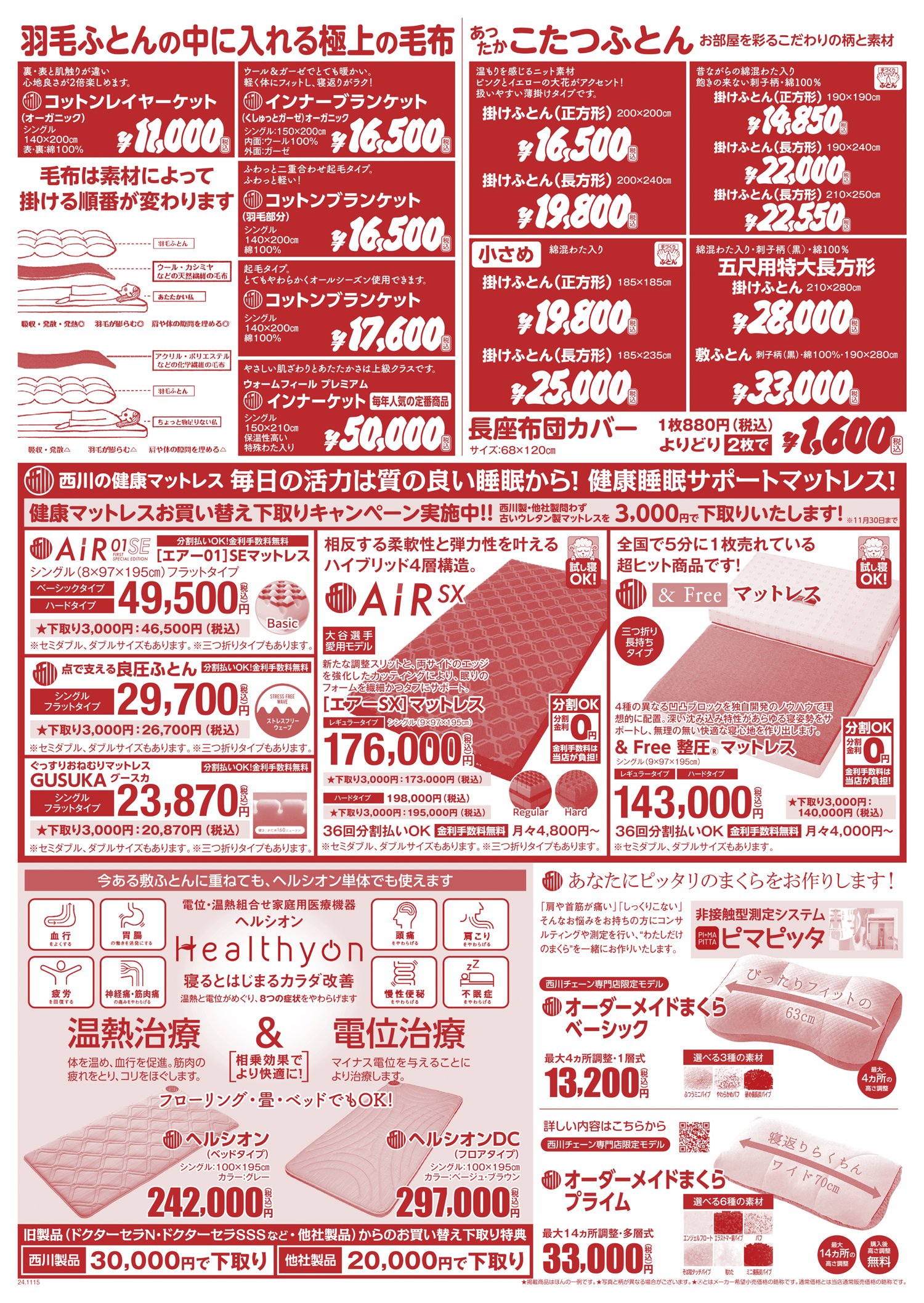 お買換え特典として、古い温熱系敷ふとん(西川製は30,000円、他社製は20,000円で下取りします!