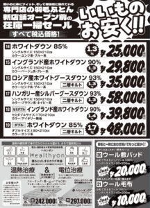 新年は新しい暖かいお布団で迎えたいお客様には絶好のチャンスです。