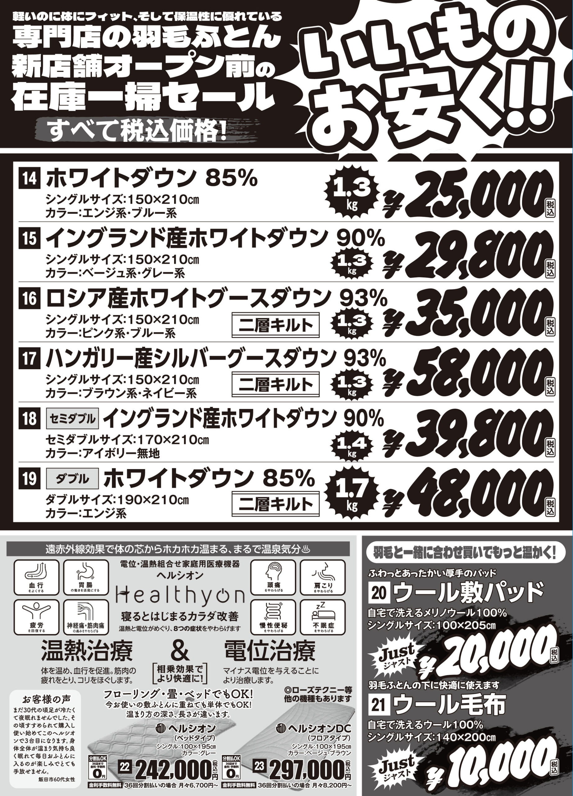 あったか寝具をリニューアル前の在庫一掃のお買い得価格で皆様のご来店をお待ちしております。
