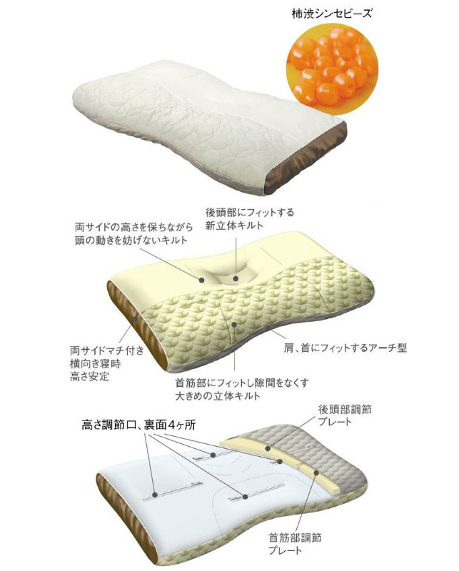 【東京西川】ファインクオリティー柿渋シンセビーズ枕 高・中・低 税込¥14,040