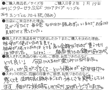 【西川】ドクターセラSSS フロアタイプ シングル 【西川】エンジェルフロート枕(低め) 飯田市 50代 女性