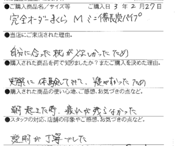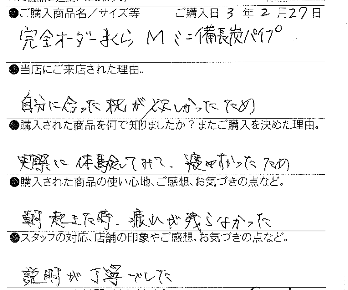 【西川】完全オーダーメイド枕 自遊自材(M) ミニ備長炭パイプ 松川町 30歳 男性 2021 3/02 お客様の声 2021年3月2日 お客様の声 【西川】ドクターセラSSS フロアタイプ シングル 【西川】エンジェルフロート枕(低め) 飯田市 50代 女性 【西川】ドクターセラSSS フロアタイプ シングル 飯田市 80代 女性 関連記事 【西川】[エアーポータブル]モバイルマット (S) 豊丘村 66歳 女性 2025年10月29日 【西川】&Free整圧マットレス -ハード(S)200cm 飯田市 33歳 男性 2025年5月28日 【西川】&Free整圧マットレス -ハード(S)200cm 飯田市 69歳 女性 2025年4月22日 【西川】&Free整圧マットレス -ハード195cm(D) 豊丘村 44歳 男性 2025年3月13日 【西川】エアーSX ハード三つ折りタイプ (S) 名古屋市 58歳 男性 2025年1月23日 【西川】AiR01-SE ベーシック(シングル) 飯田市 46歳 女性 2025年1月3日 【西川】&Free整圧マットレス -レギュラー195cm(S) 1台 / 羽毛ふとん(SL)2層キルトマザーグースダウン93% 飯田市 39歳 女性 2024年12月5日 【西川】エアーSX レギュラー (S) 飯田市 38歳 女性 2024年12月5日