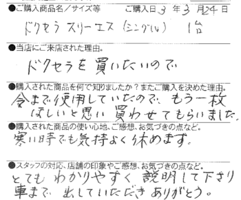 【西川】ドクターセラSSS フロアタイプ シングル 飯田市 83歳 女性 2021 3/30 お客様の声 2021年3月30日 お客様の声 【西川】整圧マットレス &Free (ハード) シングル 飯田市 42歳 男性 【西川】ドクターセラSSS フロアタイプ シングル 飯田市 80歳 男性 関連記事 【西川】[エアーポータブル]モバイルマット (S) 豊丘村 66歳 女性 2025年10月29日 【西川】&Free整圧マットレス -ハード(S)200cm 飯田市 33歳 男性 2025年5月28日 【西川】&Free整圧マットレス -ハード(S)200cm 飯田市 69歳 女性 2025年4月22日 【西川】&Free整圧マットレス -ハード195cm(D) 豊丘村 44歳 男性 2025年3月13日 【西川】エアーSX ハード三つ折りタイプ (S) 名古屋市 58歳 男性 2025年1月23日 【西川】AiR01-SE ベーシック(シングル) 飯田市 46歳 女性 2025年1月3日 【西川】&Free整圧マットレス -レギュラー195cm(S) 1台 / 羽毛ふとん(SL)2層キルトマザーグースダウン93% 飯田市 39歳 女性 2024年12月5日 【西川】エアーSX レギュラー (S) 飯田市 38歳 女性 2024年12月5日