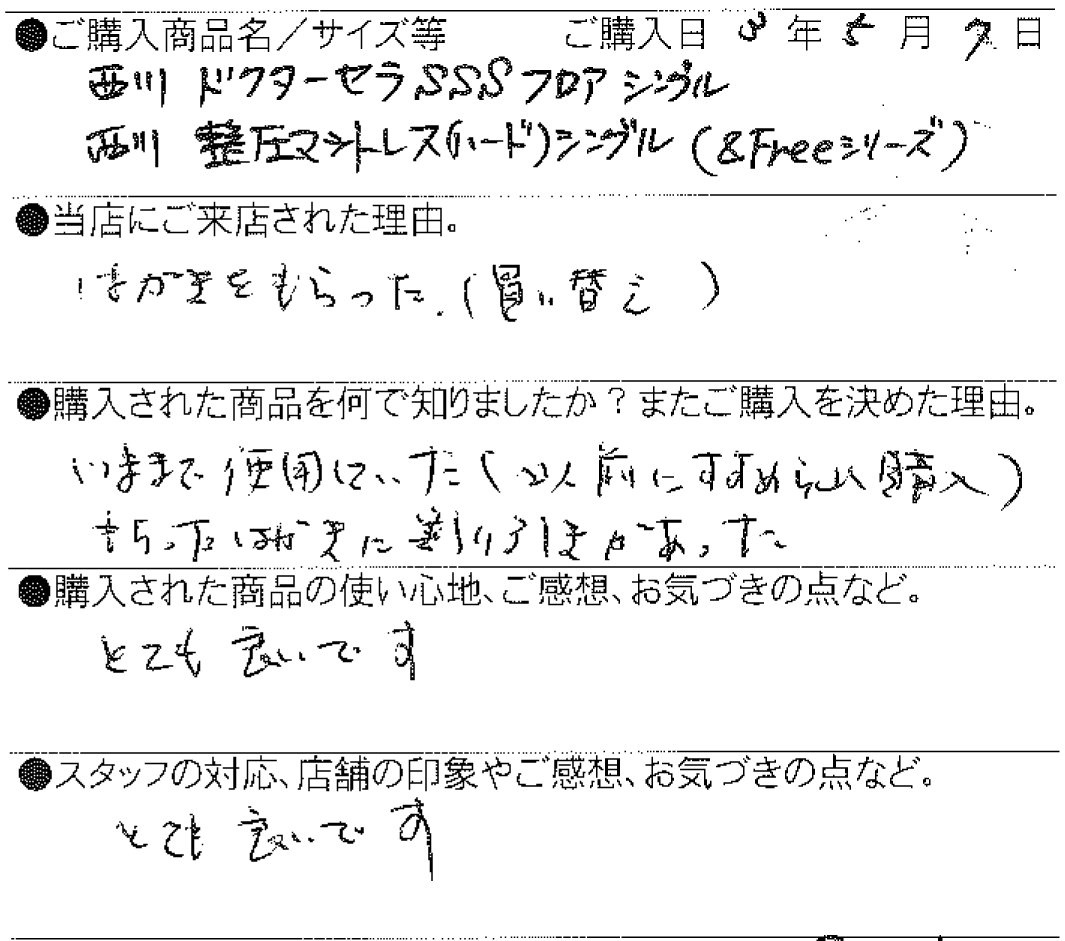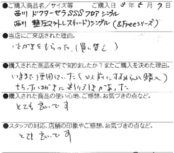 2021 5/28 お客様の声 2021年5月28日 お客様の声 【西川】エアー03 レギュラー (S) ,医師が勧める健康まくら 横楽寝(低) 飯田市 40歳 女性 冬の寝具を仕舞う前に、冬布団のメンテナンスをしましょう! 関連記事 【西川】[エアーポータブル]モバイルマット (S) 豊丘村 66歳 女性 2025年10月29日 【西川】&Free整圧マットレス -ハード(S)200cm 飯田市 33歳 男性 2025年5月28日 【西川】&Free整圧マットレス -ハード(S)200cm 飯田市 69歳 女性 2025年4月22日 【西川】&Free整圧マットレス -ハード195cm(D) 豊丘村 44歳 男性 2025年3月13日 【西川】エアーSX ハード三つ折りタイプ (S) 名古屋市 58歳 男性 2025年1月23日 【西川】AiR01-SE ベーシック(シングル) 飯田市 46歳 女性 2025年1月3日 【西川】&Free整圧マットレス -レギュラー195cm(S) 1台 / 羽毛ふとん(SL)2層キルトマザーグースダウン93% 飯田市 39歳 女性 2024年12月5日 【西川】エアーSX レギュラー (S) 飯田市 38歳 女性 2024年12月5日