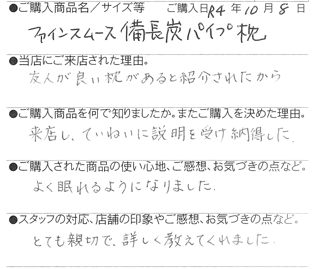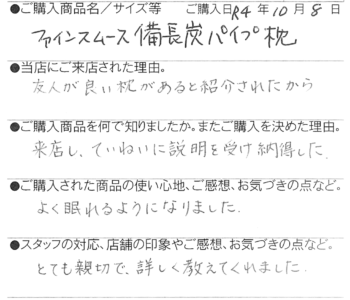 【西川】ファインスムース 備長炭パイプ枕 飯田市 55歳 女性