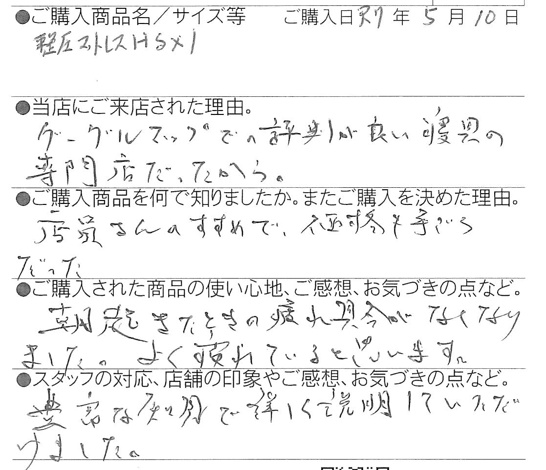 【西川】&Free整圧マットレス -ハード(S)200cm 飯田市 33歳 男性 2025 5/28 お客様の声 2025年5月28日 お客様の声 「西川チェーンの羽毛ふとんリフォーム」 衣替えシーズンにぜひご利用ください! 大きな夢を見よう!キャンペーン2025 第3弾 6月4日(水)~6月29日(日) 関連記事 【西川】[エアーポータブル]モバイルマット (S) 豊丘村 66歳 女性 2025年10月29日 【西川】&Free整圧マットレス -ハード(S)200cm 飯田市 69歳 女性 2025年4月22日 【西川】&Free整圧マットレス -ハード195cm(D) 豊丘村 44歳 男性 2025年3月13日 【西川】エアーSX ハード三つ折りタイプ (S) 名古屋市 58歳 男性 2025年1月23日 【西川】AiR01-SE ベーシック(シングル) 飯田市 46歳 女性 2025年1月3日 【西川】&Free整圧マットレス -レギュラー195cm(S) 1台 / 羽毛ふとん(SL)2層キルトマザーグースダウン93% 飯田市 39歳 女性 2024年12月5日 【西川】エアーSX レギュラー (S) 飯田市 38歳 女性 2024年12月5日 羽毛ふとんリフォーム 飯田市 50歳 女性 2024年12月5日