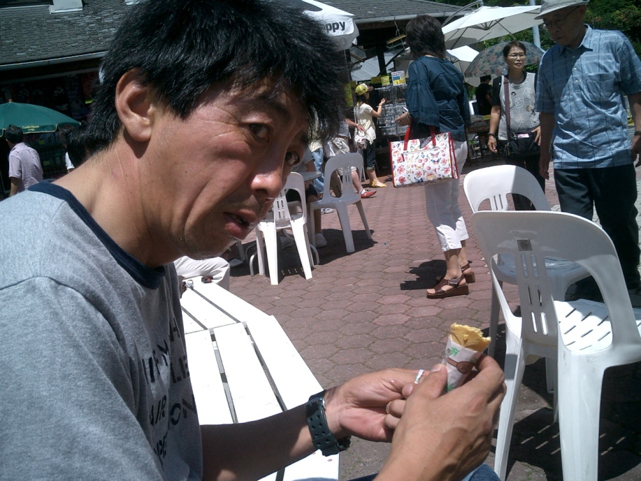 大アサリ喰いまくり〜のイカも喰ったし、&ソフトクリームも。海の幸ばっちりだぜ!私とのりちゃんは大アサリ12コ完食!景色もよかったな〜。フェリーでのお昼寝最高!