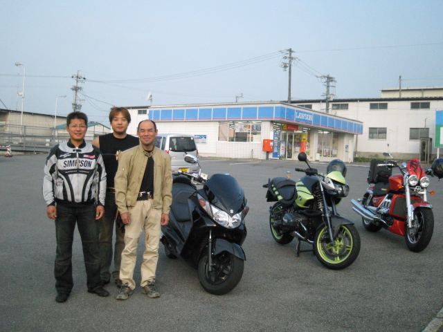 夜間モードになってからはTW君のテールランプ切れ、N島君のヘッドライト接触不良で2台サンドイッチにしてゆっくりライディング(ちゃんと整備しとこーねー(-_-))