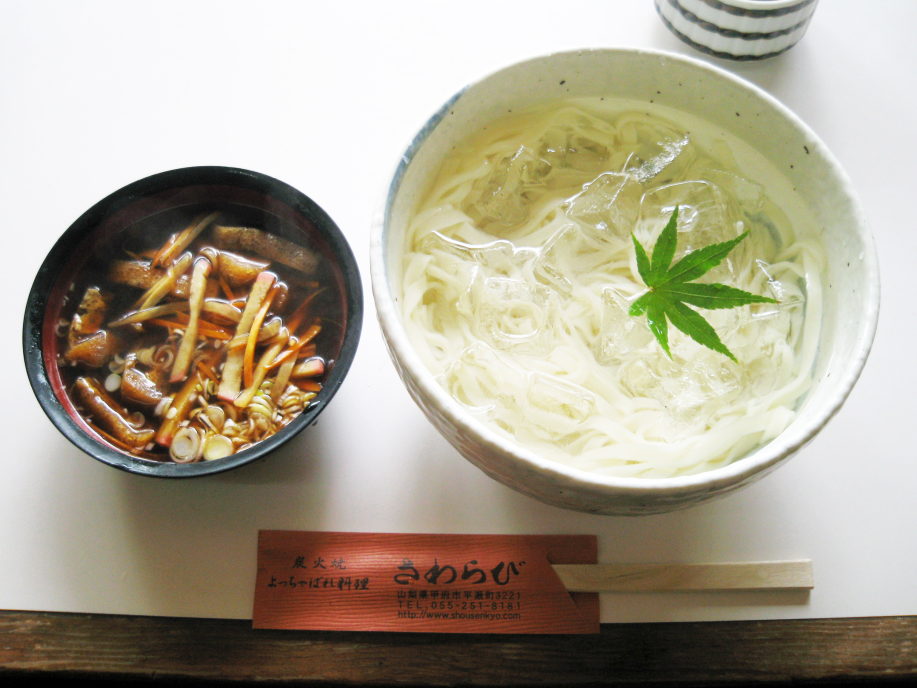 みのるちゃんが写真の冷うどん、あとの3人が冷そば